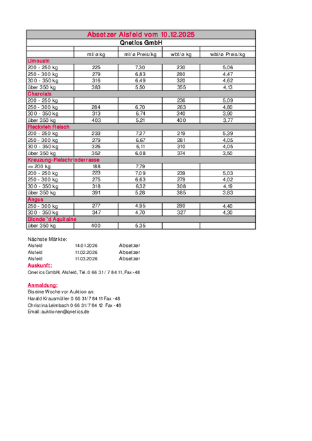 Ergebnisse Absetzerauktion Alsfeld vom 10.12.2025