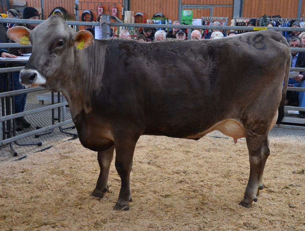 Mit einer schicken Braunviehfärse konnte Michael Knaust aus Gudensberg auch diesmal die Rassevielfalt am Auktionsort Alsfeld ergänzen. Ein Züchter aus dem Marburger Raum ersteigerte die Shotgun-Tochter für 3.300 €.