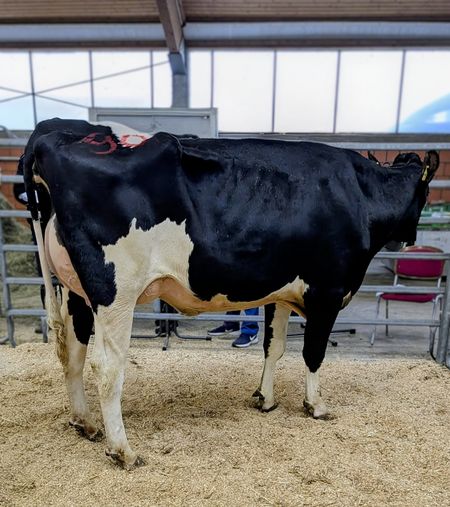 Anschließend ging es mit den schwarz- und rotbunten Rindern weiter. Die Färsen fanden zügig ihre Käufer und konnten bei stabilen Preisen veräußert werden. Viele Käufer hatten sicherlich schon die Betriebskollektion der CPR Holsteins KG, Rhenegge erwartet. 17 Färsen aus dem erfolgreichen Zuchtbetrieb wurden angeboten. Mehrere Färsen erreichten Spitzeneinsatzleistungen von über 50 kg, welches ihre Leistungsbereitschaft und genetisches Potenzial unterstreicht. Die Kollektion zeichnete sich durch einheitlich starke Qualität aus, welche dementsprechend preislich gewürdigt wurde. Die teuerste Färse der Auktion stammte aus der Betriebskollektion. Eine Big Point-Tochter aus einer 84-Punkte Gitar-Mutter bestach durch ausgesprochen gute Entwicklung mit einem vorbildlichen Euter, korrekten Fundamenten und einer beeindruckenden Einsatzleistung von 54 kg. Ein engagierter Zuchtbetrieb aus Mittelhessen sicherte sich diese kapitale Färse für 4.800 €.