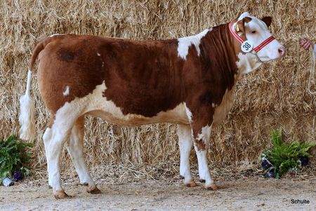 MOS Heylie PP: Eine beeindruckende Färse der Rasse Fleckvieh-Simmental und teuerstes Tier der gesamten Auktion. Stolzer Züchter ist Matthias Ort, Haintchen.