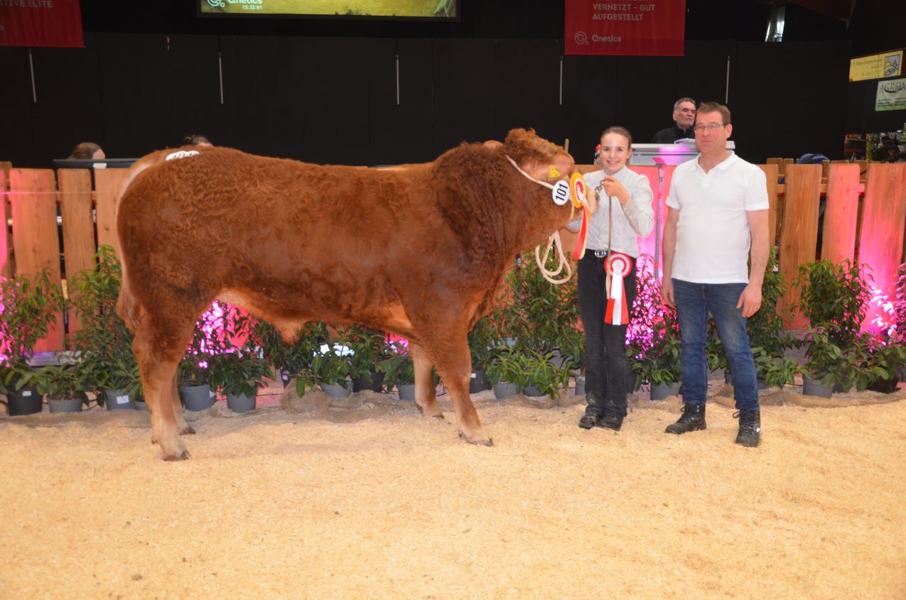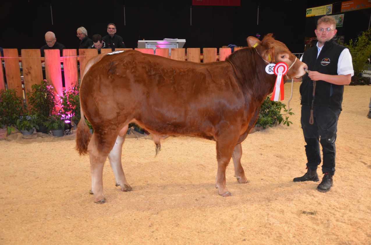 Die Endauswahl der Limousinbullen bot ein erstklassiges Angebot an leistungsbereiten und teilweise schon schauerfahrenen Bullen. An der Spitze stand der Bulle LK Renz P, ein Rhin-Sohn, der die Schauerfahrung schon im Blut hat. Reservesieger wurde der leistungsbereite reinerbige Jerome-Sohn Lk Johnny. Dicht gefolgt vom jüngsten Bullen der Auktion, ein Franz 1-Sohn, der mit viel Harmonie überzeugte.