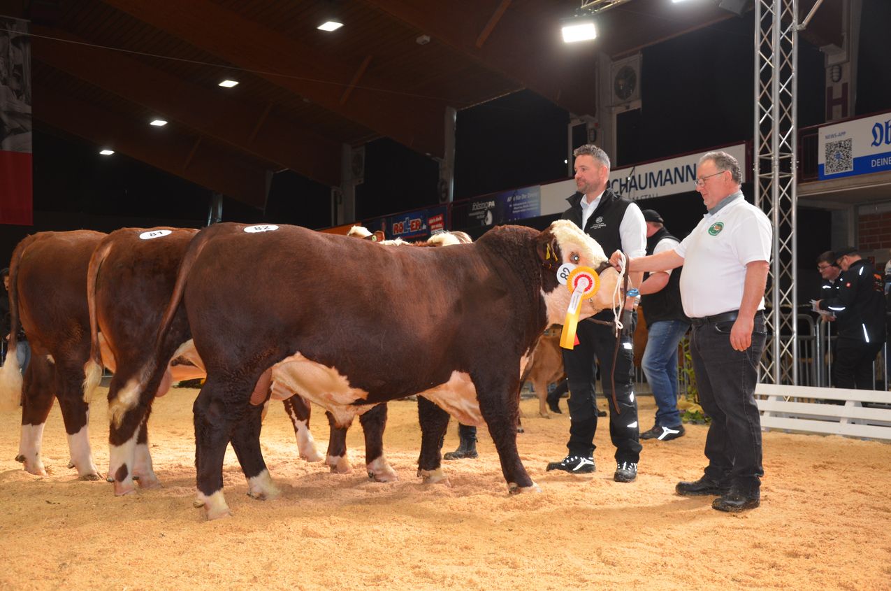 Hereford: An der Spitze der Hereford-Kollektion steht ein enorm bemuskelter Sohn eines Top-Vererbers, der mit einer überragenden Fleischleistung ausgestattet ist.